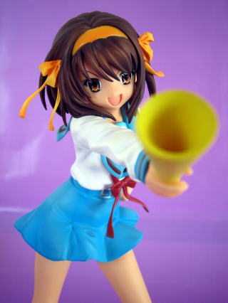 | メガホン持って元気いっぱいの制服姿、眉毛のつり上がり加減がハルヒっぽさを感じさせます |